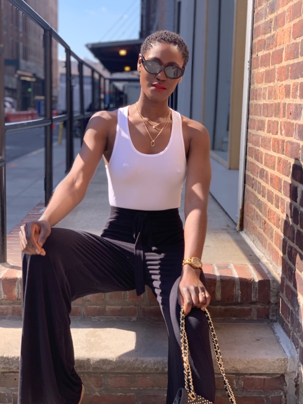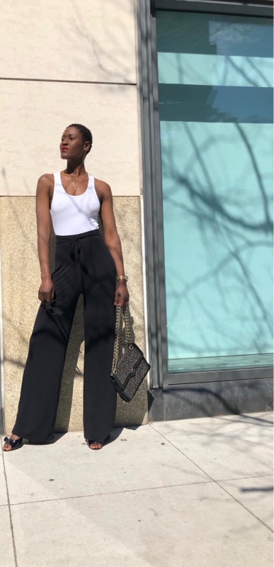 I know I can’t go wrong when I’m wearing my two favorite colors: black and white. Both colors are simple and easy to dress up. I found these black wide pants from ASOS and I'm really in love with them. They are very comfortable, and I love how It can be dressed up or down. I've been dressing them down with fashion sneakers lately but today I’m dressing them up a bit for a chic and effortless look. I styled it with a white bodysuit and my black pair of heels. For accessories, I added a chain purse, my favorite gold necklace, Marc Jacobs watch and sunnies! This is the perfect look for sunday brunch, or a stylish airport look (paired with sneakers of course)
