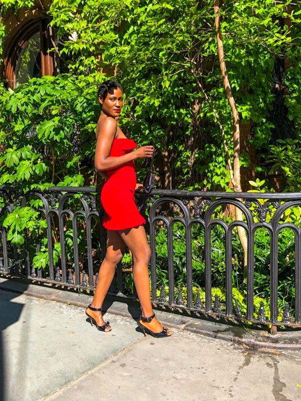 Red is becoming a color that I'm most likely to wear more often now, and I have this particular red dress I'm really loving. It's a stretchy fabric which is a plus for me because I was able to wear it when I gained a lot of weight, it was also a good fit when I lost the weight as well. I was getting lots of complements when I was shooting for this look. I wore this dress two ways because I loved how it looked both ways. I can’t stress how much I love a versatile piece enough and this dress no different. Because the dress is so vibrate, that It makes a statement on its own, I had to pair it with a black buckle heels and a cute little purse for balance. What I also really love about this dress is how the color compliments my skin tone, especially against the sun. It’s a sophisticated look with ruffles which gives the dress a more feminine touch. This outfit is great for many occasions such as on your birthday, dinner outing, even on a chill day with a pair of sneakers..