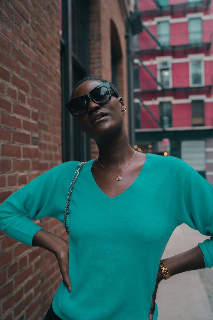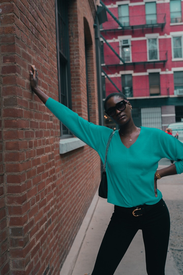 I wanted a more cinematic street style look, so we shot this look in Soho, which was both our idea. I love Soho because of its architecture and style.