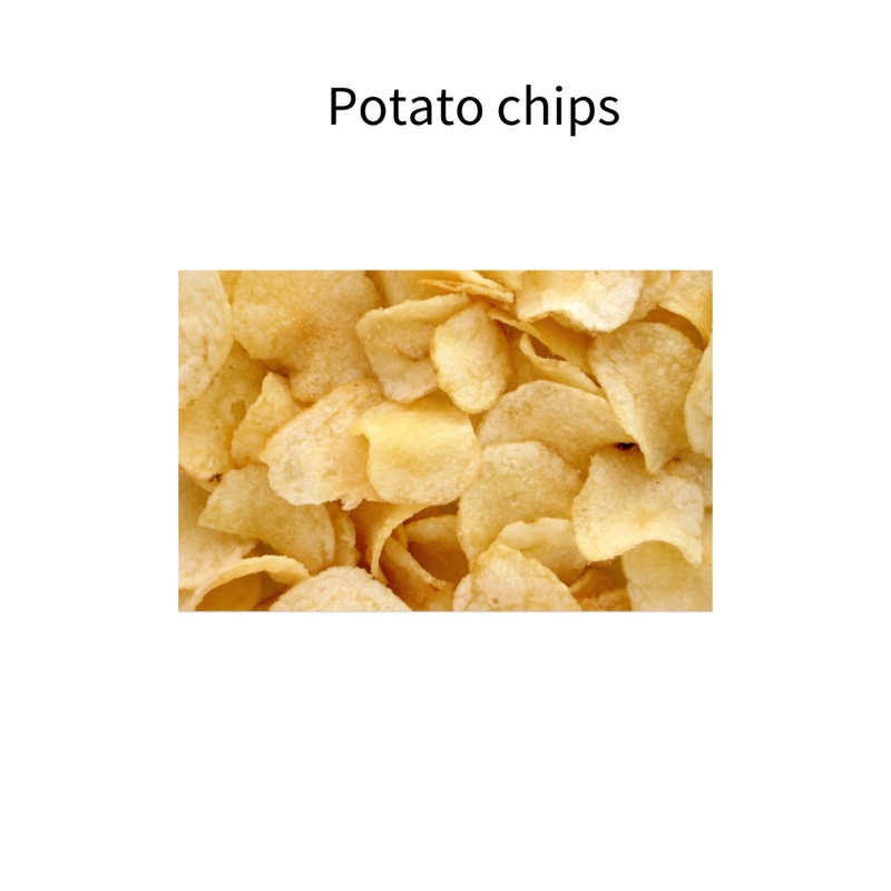 Chips: Potato and corn chips. Substitute them for carrots, almonds, cashew or rice cake.